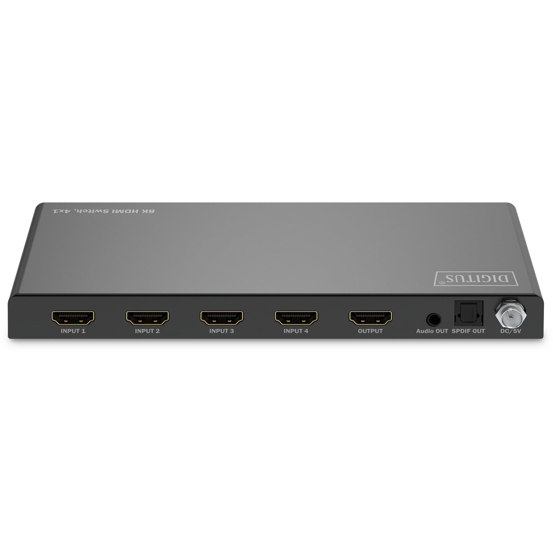 Der 8K 4x1 HDMI Switch DS-55335 von Digitus ermöglicht bequemes Wechseln zwischen bis zu vier HDMI-Eingangsquellen an einem Monitor oder TV. Dabei lässt sich zum Beispiel zwischen DVD / Blu-Ray-Player, Spielekonsole, Streaming Box / Stick, Digital Receiver oder PC mit der Fernbedienung, intelligenter automatischer Erkennung oder auch per Schalter am Switch selbst umschalten. Ebenso können Audio-Signale über Toslink oder 3,5mm Stereo Anschluss ausgekoppelt und separat wiedergegeben werden. Lästiges Umstecken von Kabeln gehört so der Vergangenheit an. Der HDMI Switch eignet sich perfekt bei Wandmontage des TVs, es ist nur ein HDMI-Kabel zum Anschluss der Quellgeräte erforderlich. Dank Unterstützung für Ultra HD 8K mit 60 Hz werden Medieninhalte in noch brillanterer Auflösung dargestellt.