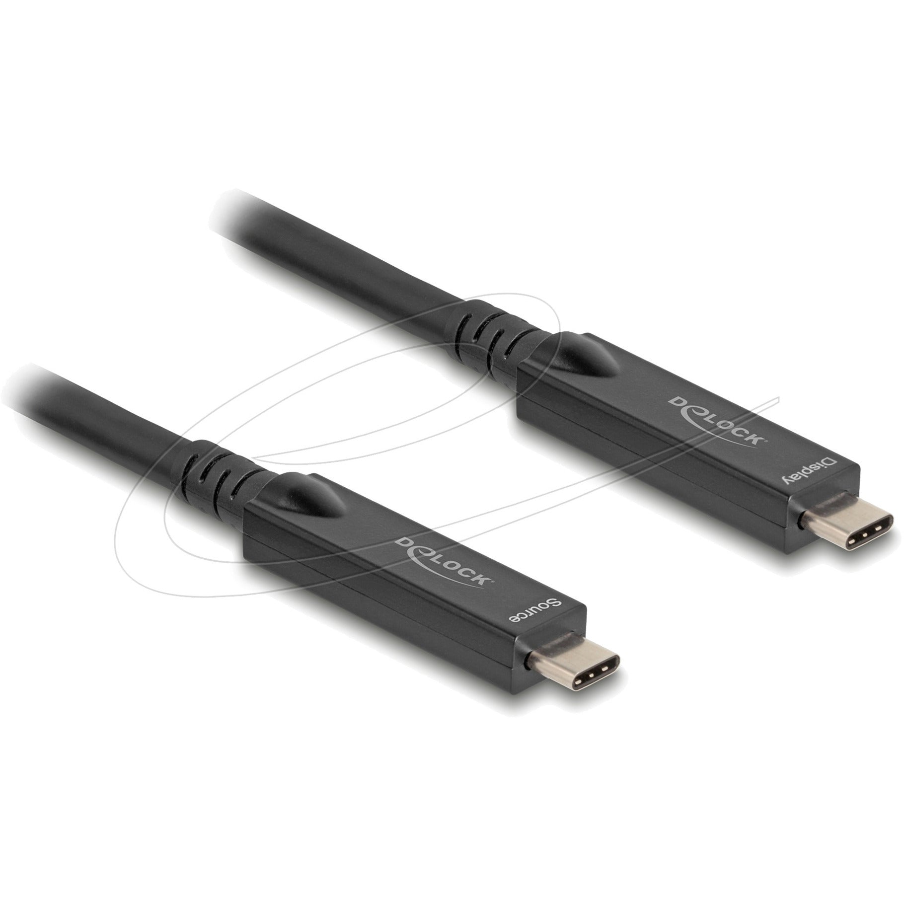 Das USB Kabel 84258 von Delock stellt eine Verbindung zwischen Geräten mit einem USB-C Anschluss und einem PC oder einem Notebook mit freiem USB-C Port her. Das aktive optische Kabel nutzt Lichtwellenleiter, um High-Speed Signale zu übertragen. Verglichen mit dem traditionellen Kupferkabel ist es weicher, dünner, leichter und kann Signale verlustfrei über längere Distanzen übertragen. Das Kabel ist für den Anschluss eines USB-C Monitors mit einer Auflösung bis zu 8K Ultra HD (7.680 x 4.320 @ 60Hz) an einen Computer mit USB-C Schnittstelle und DisplayPort Alternate Mode Unterstützung geeignet. Beim Anschluss an eine Dockingstation mit gleichzeitigem Betrieb von DisplayPort und USB mit 10 Gbps ist eine Auflösung von 3.840 x 2.160 @ 120Hz möglich. Das aktive optische Kabel ermöglicht Datenübertragungsraten bis zu 10 Gbps beim Anschluss von USB 10 Gbps kompatiblen Geräten. Selbstverständlich können auch USB 2.0 Geräte angeschlossen werden. Durch die Unterstützung des USB Power Delivery Standards können angeschlossene Geräte mit bis zu 60 Watt (20V / 3A) aufgeladen und mit Strom versorgt werden.