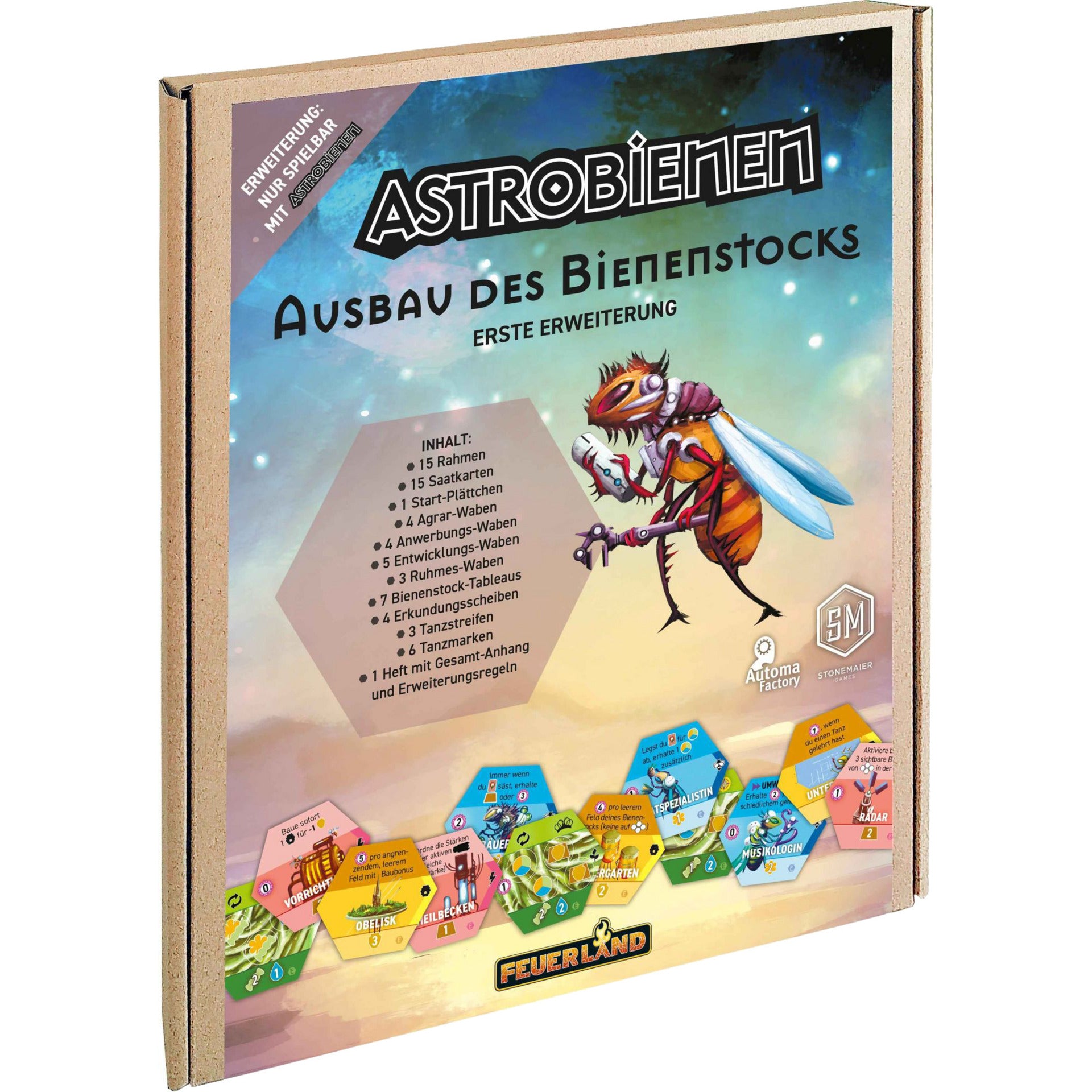 Erweitert die Galaxie der Astrobienen mit neuen Bienenstöcken, Rahmen und mehr! Diese Erweiterung liefert neues Futter für alle Astrobienen-Fans! In allen Spiel-Elementen wird mehr Varianz geboten. Es gibt eine neue Fraktion und neue Waben von allen 4 Sorten. Die 7 neuen Bienenstock-Tableaus mit ihren verschiedenen Formen und Boni ermöglichen neue Strategien. Erstmals gibt es verschiedene Rahmen-Plättchen. Jedes hat ganz unterschiedliche Boni, die ihr beim Bebauen erhalten könnt. Neue Saatkarten mit interessanten Zusatz-Aktionen runden die Erweiterung ab.