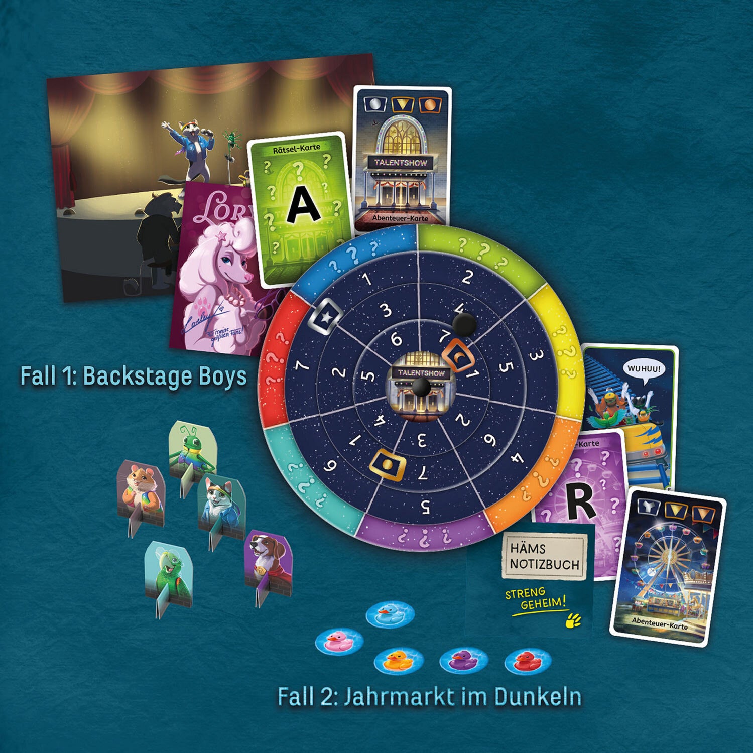 Die tierischen Superhelden Kater Milo, Hamster Häm, Hund Bella, Papagei Nele und Wanze Luis erleben zwei tolle Rätsel-Abenteuer! Zuerst ermitteln sie als Band bei einer tierischen Talentshow. Hinter den Kulissen ist ein Diebstahl geplant, den die Helden verhindern wollen. Aber auch der Jahrmarkt ist in Gefahr! Immer wieder kommt es zu mysteriösen Stromausfällen. Die Helden vermuten Sabotage und machen sich auf den Weg, um die geheimnisvollen Vorfälle zu klären. Schon Kinder ab acht Jahren lösen Rätsel bei einer tierischen Talentshow und auf dem nächtlichen Jahrmarkt. Ein leichter Einstieg in die Escape-Spielwelt von EXIT - Das Spiel!