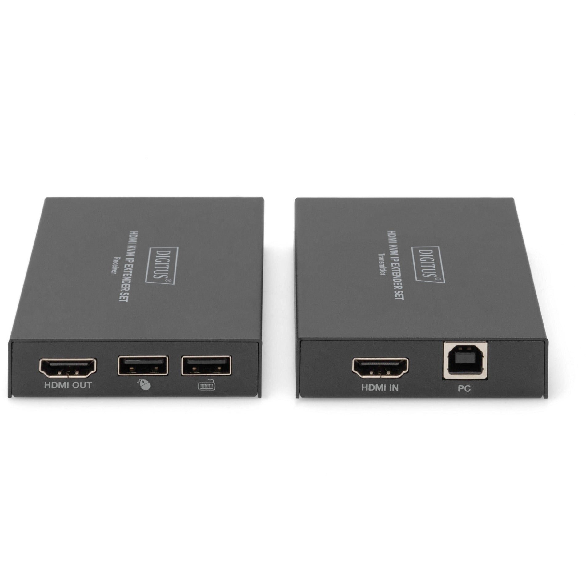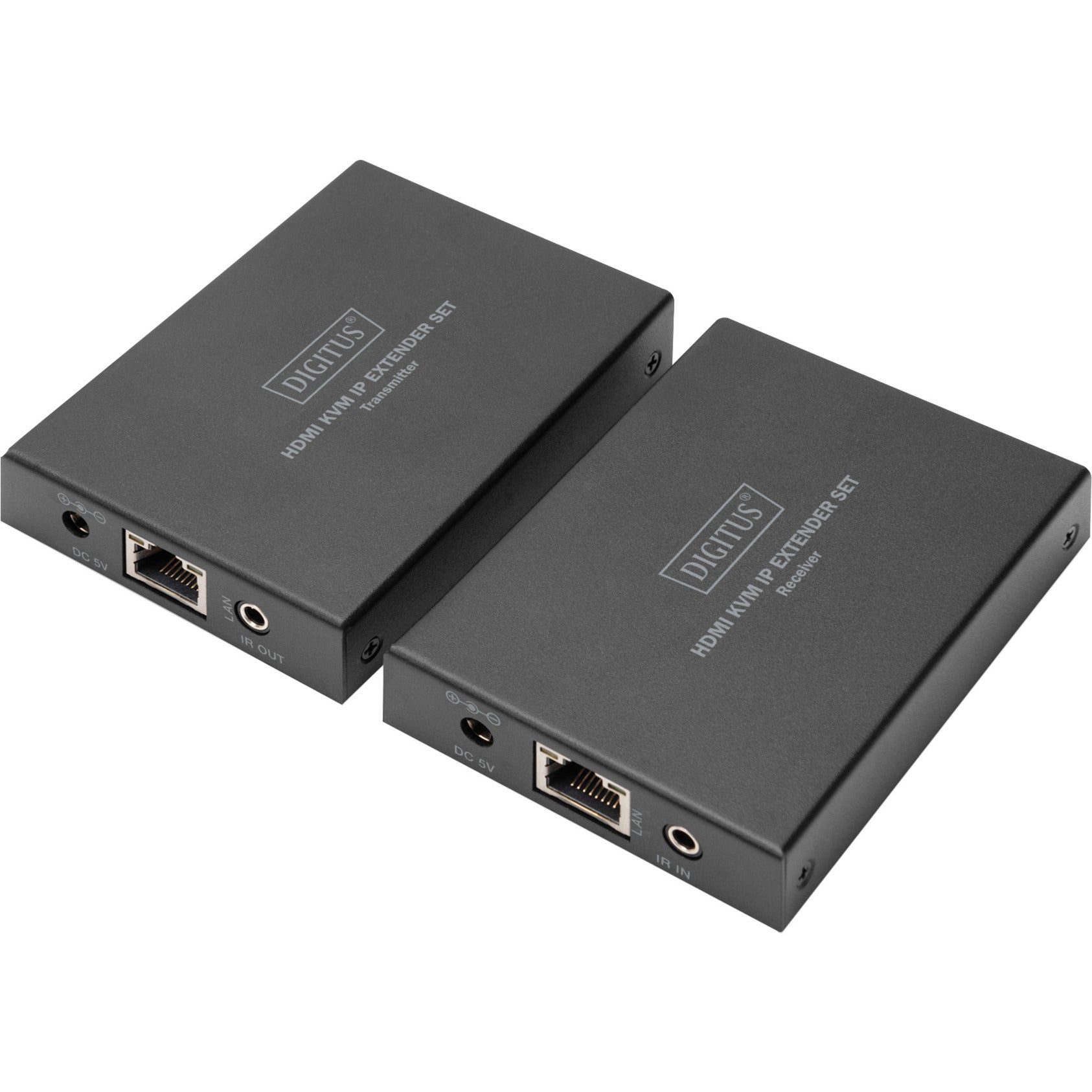 Das HDMI KVM IP Extender Set DS-55507 von Digitus besteht aus einer Sendeeinheit (lokaler Standort) sowie einer Empfängereinheit (entfernter Standort). Das HDMI-Signal kann über ein Netzwerkkabel (CAT 5e oder höher) auf eine maximale Entfernung von 150 Meter verlängert werden (Punkt-zu-Punkt Verbindung). Ebenso lässt sich das HDMI-Signal auf eine unbegrenzte Distanz über die vorhandene Netzwerkinfrastruktur bzw. mittels Standard IP Netzwerkswitches verlängern (IP-Verbindung). Die höchste unterstütze Video-Auflösung liegt bei Full HD (1.920 x 1.200 /60 Hz, 4:4:4). Ebenso ermöglicht es den bequemen Zugriff auf einen Computer (Maus & Tastatur) über die USB-Ports an der Empfängereinheit. Es eignet sich perfekt für industrielle, gewerbliche sowie öffentliche Applikationen.