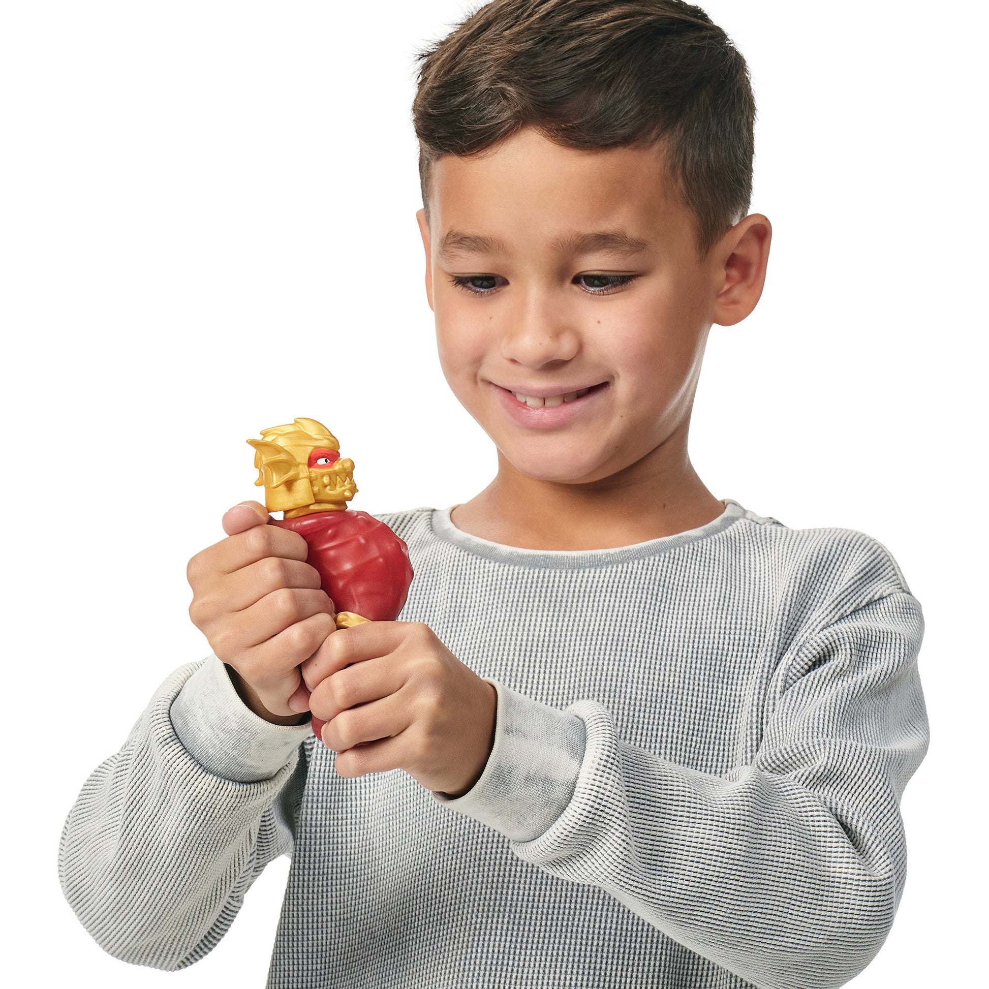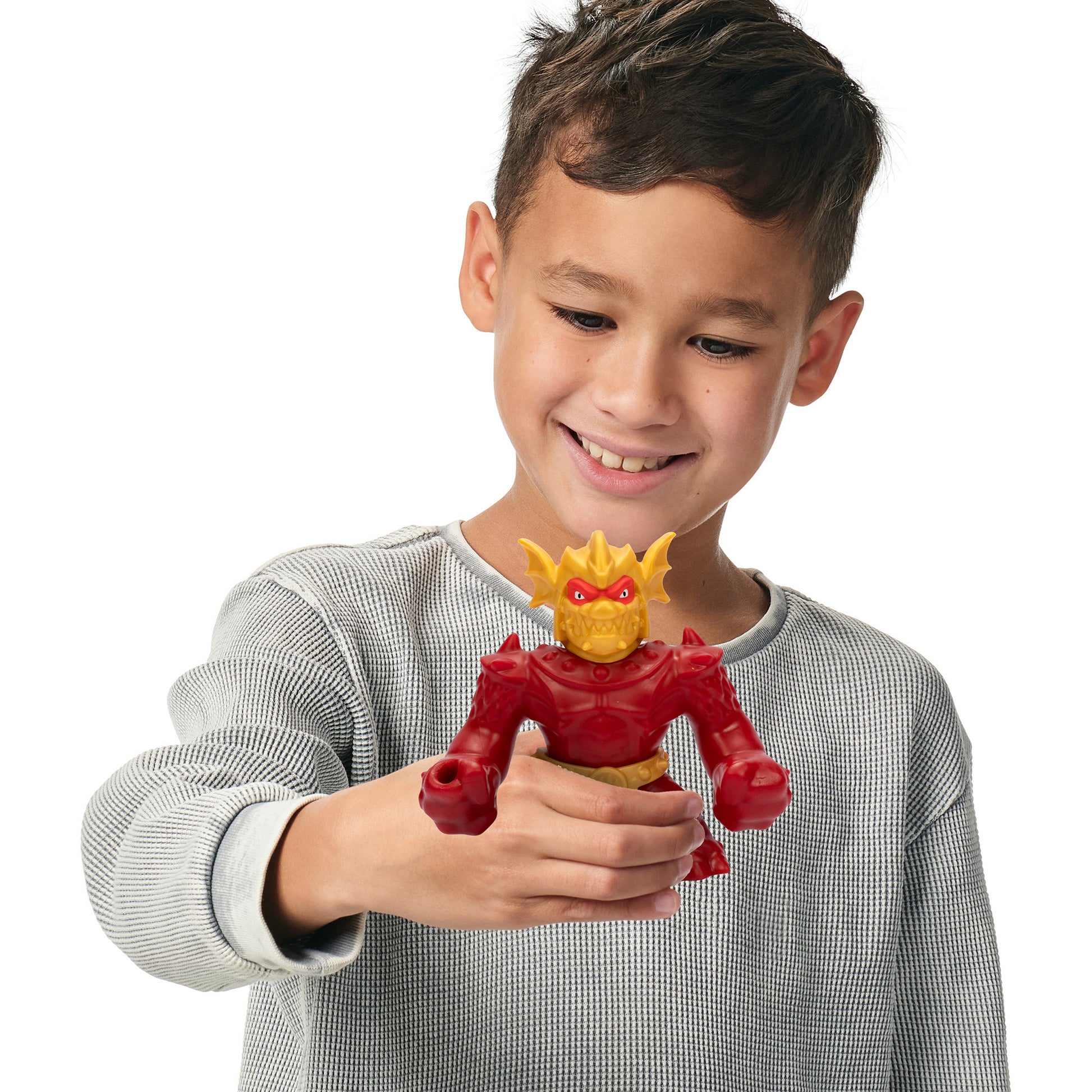 Hier kommen die Stretch Strikers! Diese Spielfiguren aus der Welt der Heroes of Goo Jit Zu von Moose Toys beeindrucken mit epischen Dehn-Attacken. Blazagon lässt sich bis zum 3-fachen seiner ursprünglichen Grösse auf bis zu 50 Zentimeter dehnen - so bist du jederzeit bereit für eine beeindruckende Attacke! Ausserdem hat Blazagon eine einzigartige Füllung. Drücke und dehne seinen Körper, um sie zu entdecken!