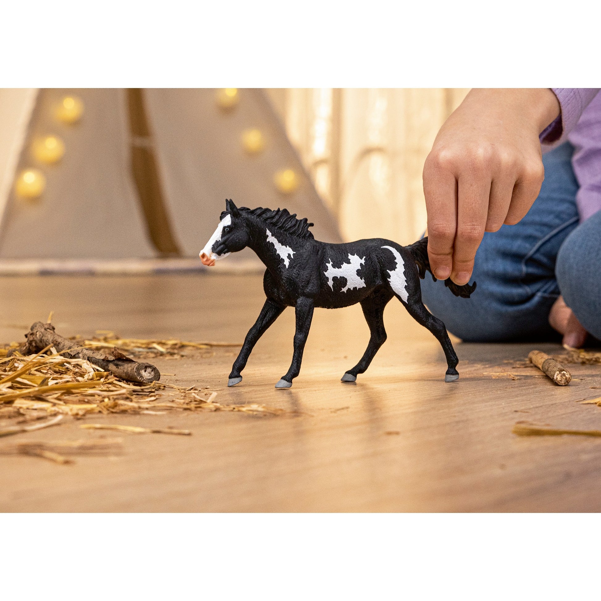 Entdecke die Spielfiguren aus der Schleich-Serie Horse Club: Perfekt für Pferdeliebhaber, fängt jede Figur die Eleganz und Individualität der edlen Tiere mit beeindruckender Detailtreue ein. Geprägt von handwerklicher Qualität, die die Zeit überdauert, versprechen diese Spielgefährten abenteuerliche Reiterhofgeschichten, die Kinderherzen höher schlagen lassen - eine unvergessliche Reise in die Welt der Pferde. Paint Horses sind eine umgängliche und ausgeglichene Pferderasse und werden daher als Familien- oder Reitferd in allen Disziplinen des Freizeitreitens eingesetzt. Auch zum Westernreiten sind Paint Horses beliebt. Mit seiner ausdrucksstarken und dynamischen Pose verdeutlicht der Paint Horse Wallach, dass er ein robutes Pferd ist.