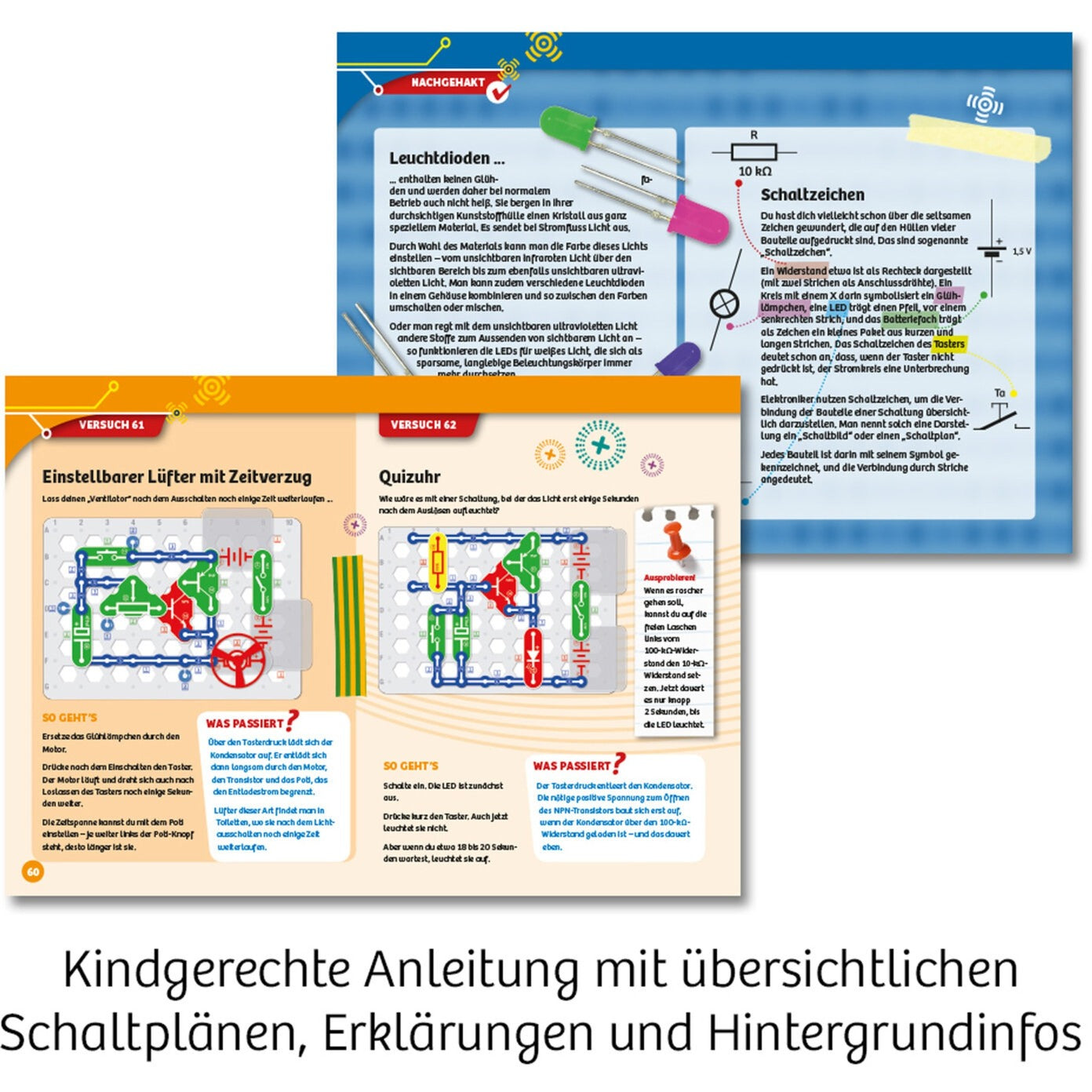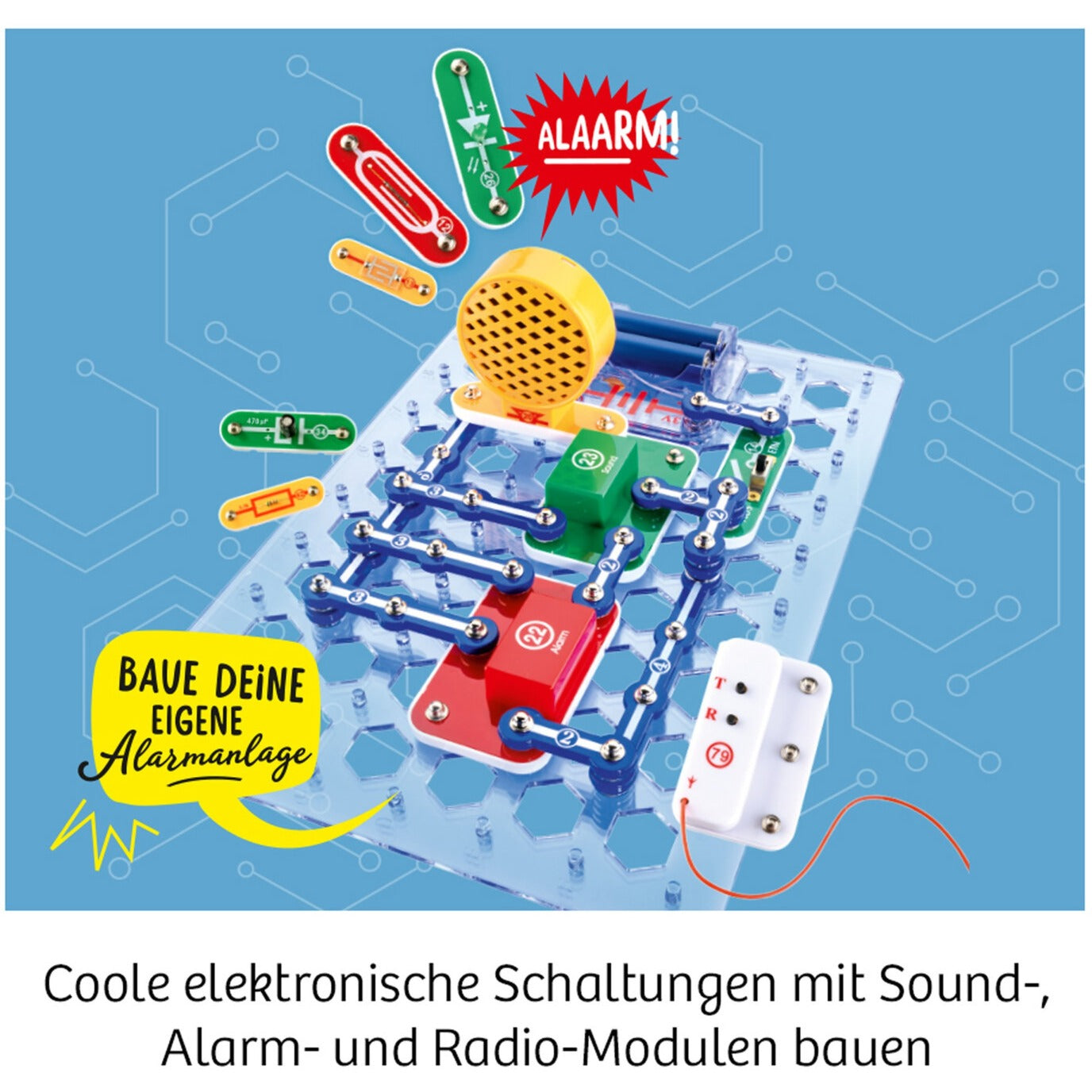 Der Easy Elektro - Big Fun Experimentierkasten von KOSMOS ist ein toller perfekte Spielgefährte für junge Tüftler und Elektronik-Begeisterte. Mit diesem Kit bauen Kinder nicht nur ein eigenes Radio oder generieren mit Lautsprecher und Mikrofon amüsante Töne, sondern lernen auch, Schaltkreise durch einen Lichtsensor zu steuern und unterschiedliche Alarmsysteme zu konzipieren. Das Verständnis für elektronische Prozesse wird ganz nebenbei und mit viel Vergnügen geschärft. Die Handhabung dieses Kits ist denkbar simpel: Das Easy Klick-System von KOSMOS ermöglicht es, die Bauteile schnell und sicher miteinander zu verbinden. Für eine reibungslose Anwendung sorgen durchnummerierte Bauelemente und eine ausführliche Anleitung mit präzisen Beschreibungen und Schaltplänen. Die zusätzlichen „Nachgehakt“-Seiten bieten wertvolles Wissen, welches spielerisch und mit alltagsnahen Bezügen die elektrotechnischen Grundlagen erklärt. So wird Wissen greifbar und Technik faszinierend. Easy Elektro - Big Fun ist die Eintrittskarte in eine Welt voller Entdeckungen und Kreativität - ein durchdachtes Konzept für kindgerechtes Lernen und jede Menge Spielspass. Der Spass an Technik und Elektronik beginnt hier!100045323