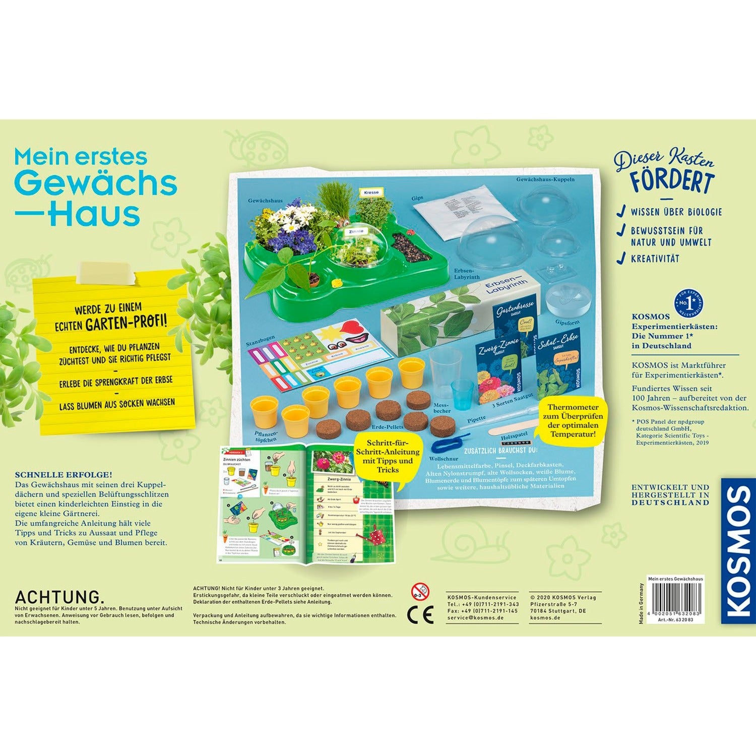 Wann beginnen Samen zu keimen? Wo fühlen sich Pflanzen besonders wohl? Einfach selbst ausprobieren - mit diesem Pflanz-Set von KOSMOS, das alles für den ersten eigenen Miniatur-Garten auf der Fensterbank bereit hält. Das clevere Kuppel-Gewächshaus macht es Kindern besonders leicht, die schnellwachsende Kresse, Zwerg-Zinnien und Erbsen erfolgreich zum Wachsen zu bringen. Was beim Aussäen und der Pflege der Pflänzchen beachtet werden muss, erklärt die farbig gestaltete Anleitung altersgerecht in vielen Bildern, so dass die einzelnen Schritte auch ohne Lesekenntnisse verstanden werden. Zusätzlich warten 20 spannende Experimente: Weisse Blüten bunt färben, erleben, wie die Erbse ihren Weg durch das dunkle Labyrinth findet, einen Graskopf aus einem Nylonstrumpf basteln oder aus Gips kleine Figuren giessen und individuell gestalten - der erste Einblick in die Welt der Biologie macht hier so richtig viel Spass!
