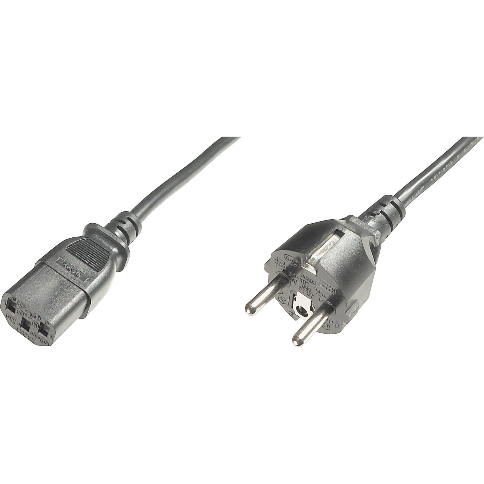 Das Netzkabel AK-440101-018-S von DIGITUS, mit CEE 7/7 (Typ-F) Schutzkontaktstecker und IEC C13 Buchse, auch als Kaltgerätekabel bekannt, dient zum Anschluss eines PCs oder Monitors an das deutsche Hausstromnetz (Steckdose).
