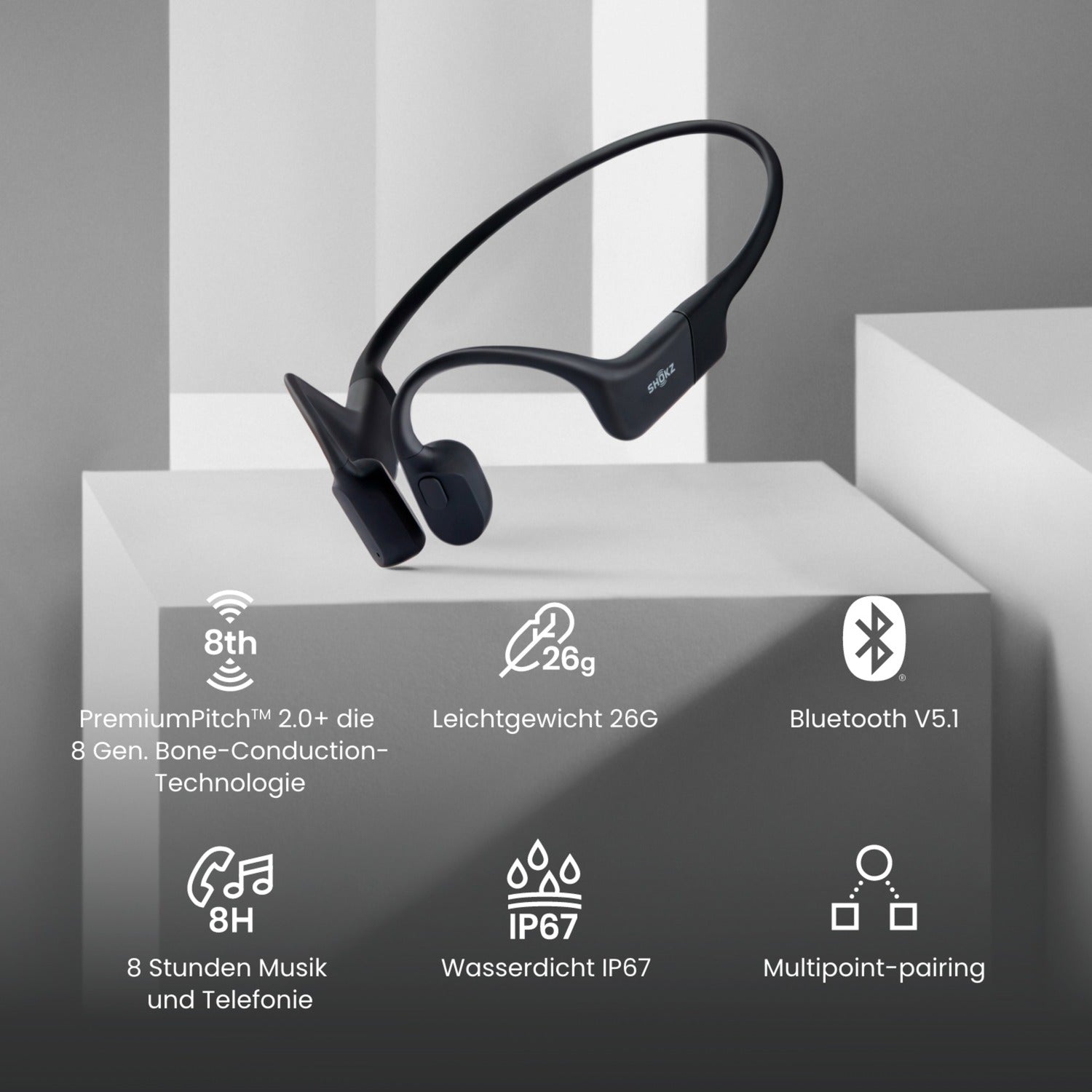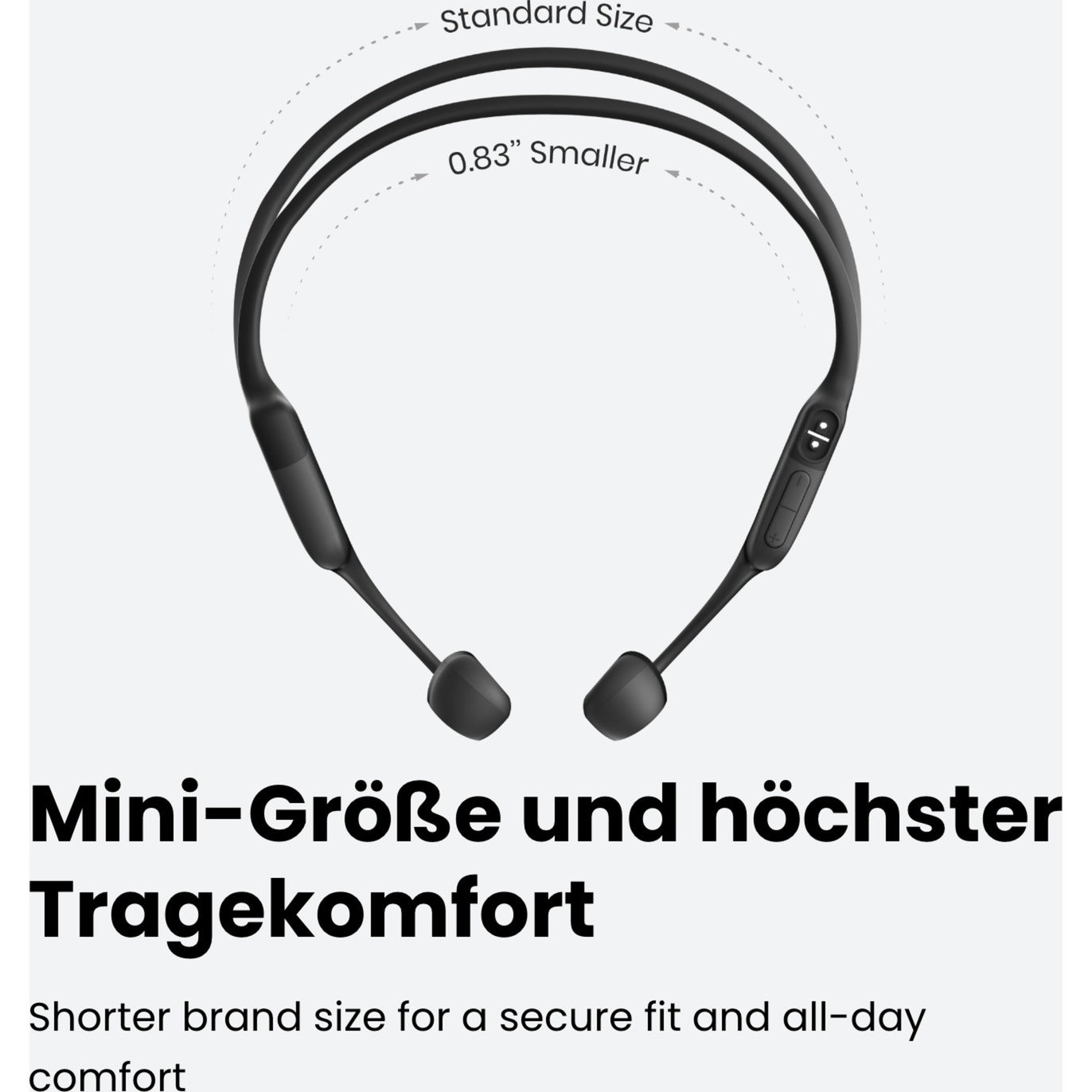 Die Shokz OpenRun bieten eine Schnellladefunktion und sind nach nur 10 Minuten für bis zu 1,5 Stunden einsatzbereit. Durch das Open-Ear Design bleibt die Umgebung weiter wahrnehmbar, ohne dass die Soundqualität der Kopfhörer darunter leidet. Die Technologie PremiumPitch 2.0+ bietet ein breites Spektrum an dynamischem Stereo-Sound, ausserdem sind die OpenRun nach IP67 gegen Spritzer, Schweiss und Regennässe geschützt. Mit dem Bluetooth 5.1-Chip, den Umgebungsgeräusche unterdrückenden Dual-Mikrofonen und dem CVC-Algorithmus zur scharfen Abgrenzung der Stimme von Umgebungsgeräuschen, bleiben Gespräche unterwegs stets klar verständlich. Der OpenRun Mini ist die ideale Wahl, wenn eine kleinere Passform benötigt wird: Das Band ist bei dieser Version etwa 21 mm kürzer als bei der Standard-Version.