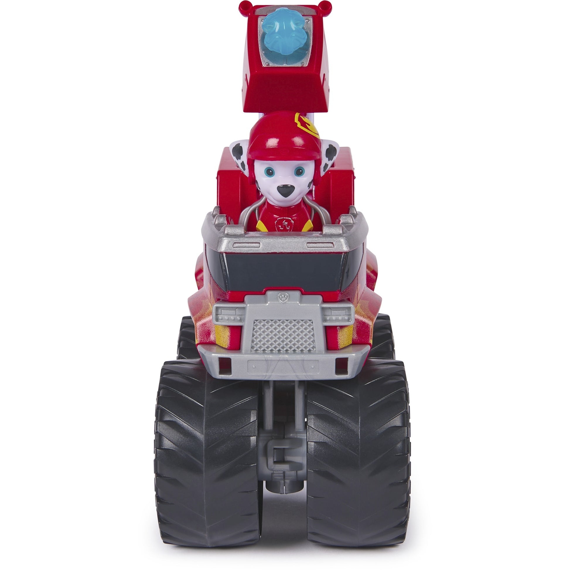 Chaos in der Abenteuerbucht! Dort findet eine Monstertruck-Rallye statt, an der auch der Trucker Boomer teilnimmt. Er gewinnt aber nicht und ärgert sich so sehr, dass er nun für allerlei Ärger sorgt. Die tierischen Helden der Paw Patrol mit ihren Rescue Wheels Monstertrucks sind also gefragt. Mit dabei: Marshall und sein cooler neuer Rescue Wheels Feuerwehr-Truck. Der Monstertruck mit extragrossen Rädern ist mit einem Geschoss-Abwurf und Geschossen zum Abfeuern ausgestattet und perfekt fürs Aussengelände geeignet. Marshall lässt sich auf dem Truck befestigen – also ab ins nächste Abenteuer!