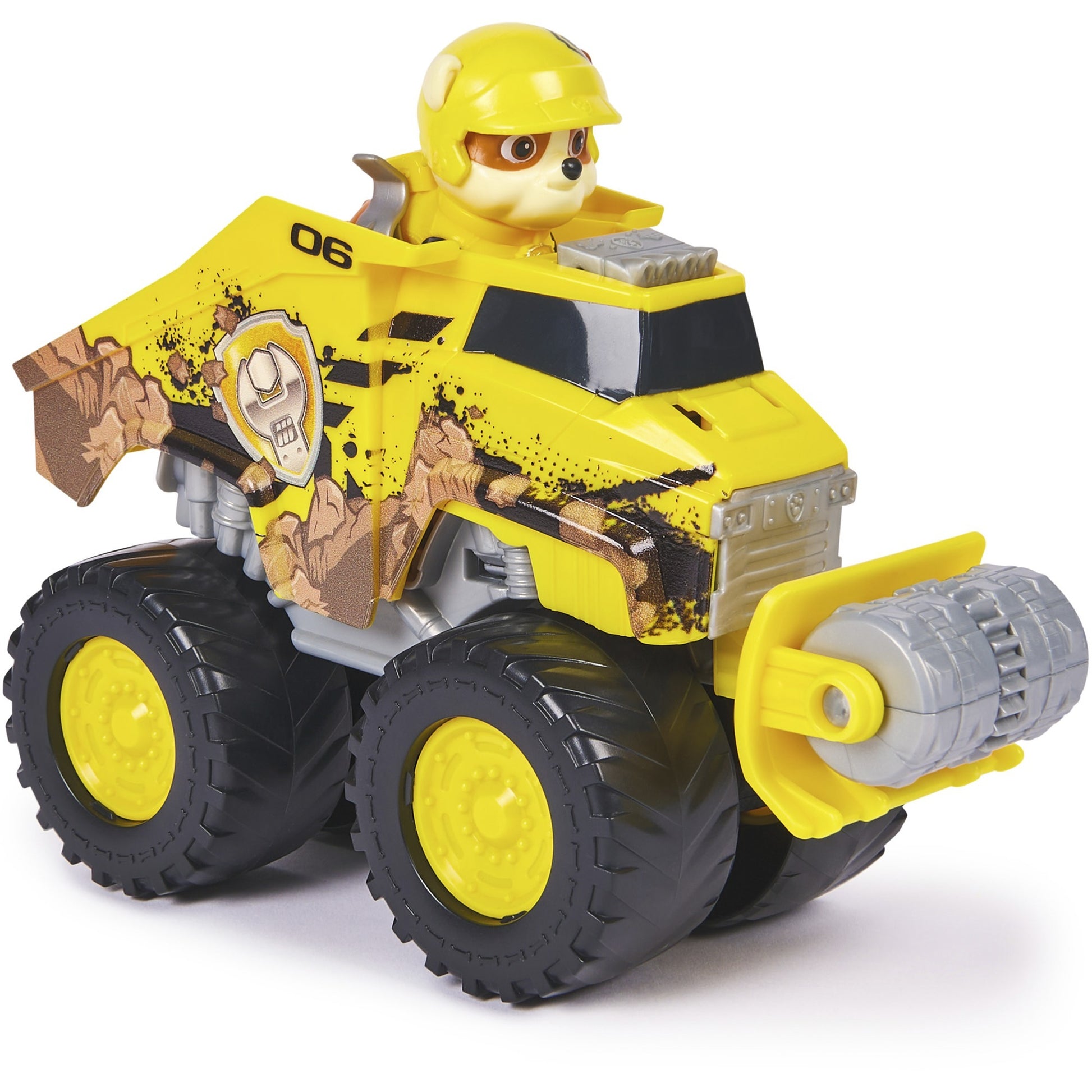 Chaos in der Abenteuerbucht! Dort findet eine Monstertruck-Rallye statt, an der auch der Trucker Boomer teilnimmt. Er gewinnt aber nicht und ärgert sich so sehr, dass er nun für allerlei Ärger sorgt. Die tierischen Helden der Paw Patrol mit ihren Rescue Wheels Monstertrucks sind also gefragt. Rubble ist mit seinem neuen Monstertruck natürlich am Start, um bei den Rettungsmissionen zu helfen. Sein Bulldozer mit extra grossen Rädern ist perfekt für Action im Gelände ausgerüstet und im supercoolen Look der Serie gestaltet. Ein tolles Extra: Über einen Knopf auf dem Dach lässt sich die Pflugwalze ausfahren. Rubble räumt damit alle Hindernisse aus dem Weg!