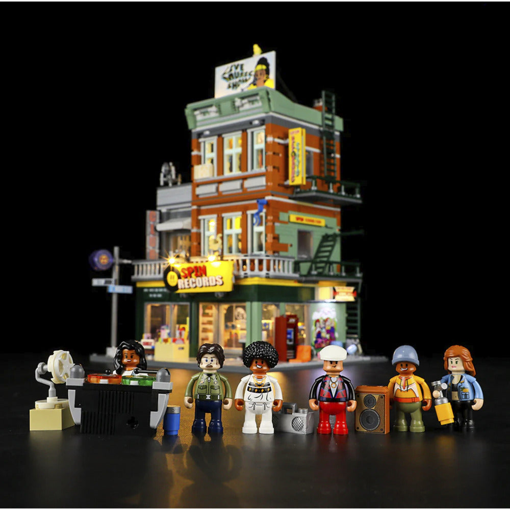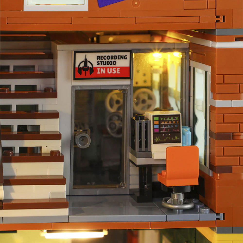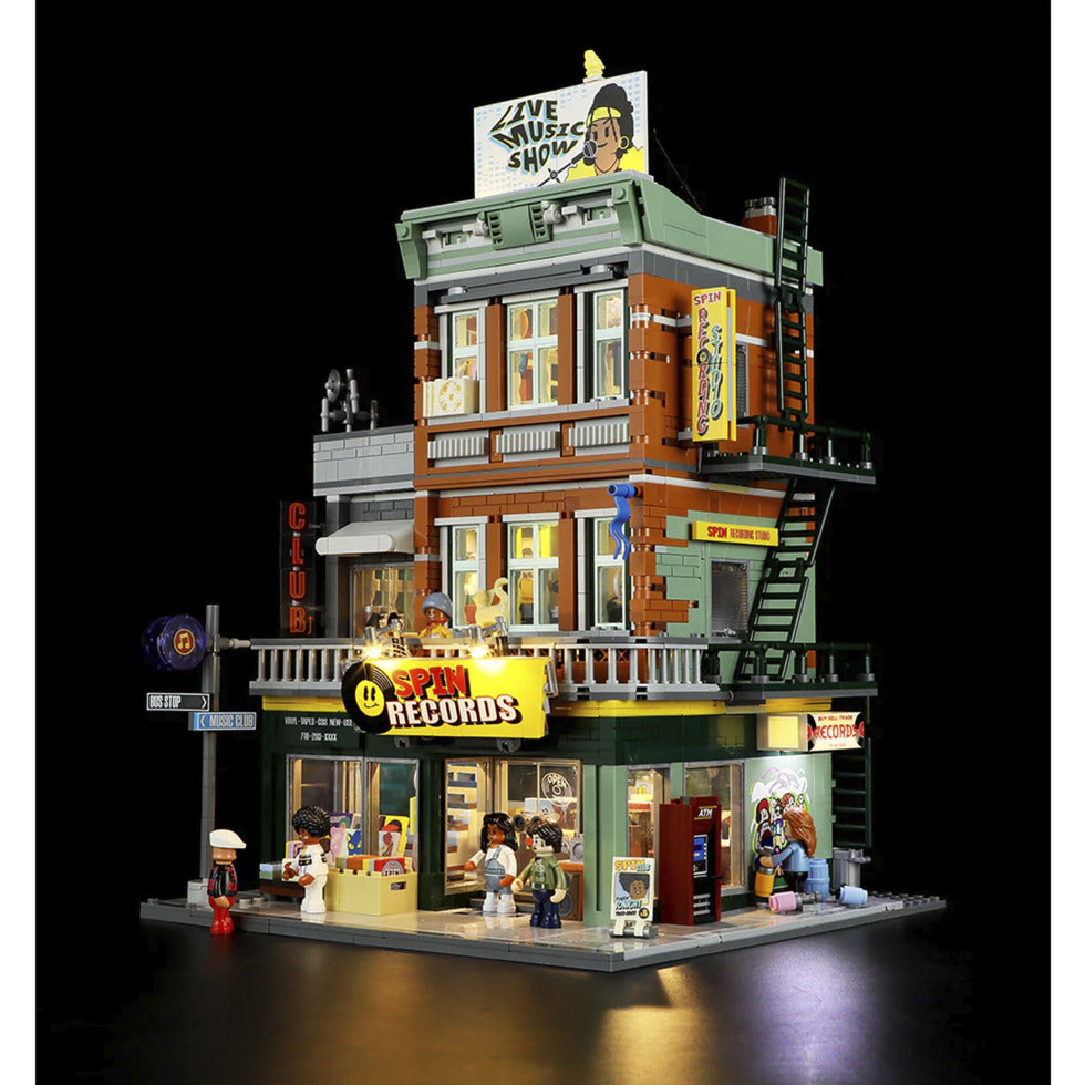 Lumibricks - das ist Klemmbaustein-Bauspass mit tollen Details und effektvoller Beleuchtung! Jedes Set bietet neben authentischer Gestaltung und passgenauen Teilen auch Beleuchtungszubehör, was das fertige Set im Dunkeln zu einem beeindruckenden Hingucker macht. Das gilt auch für die Sets der Street-Fusion-Serie: Diese Sets zeigen modernes Stadtleben in verschiedenen Ausprägungen. Der Plattenladen ist dem typischen Strassenstil der 1990er Jahr nachempfunden: Rote Backsteinmauern und Stahltreppen sind typische visuelle Elemente dieser Zeit. Im Erdgeschoss befindet sich der Laden mit Vinyl-Plattenregalen und weiteren typischen Verkaufsartikeln. Hinzu kommt ein voll eingerichtetes Aufnahmestudio mit vielen Details. Das 36 Zentimeter hohe Gebäude-Modell wird mit insgesamt 15 LEDs beleuchtet und enthält sechs Minifiguren.