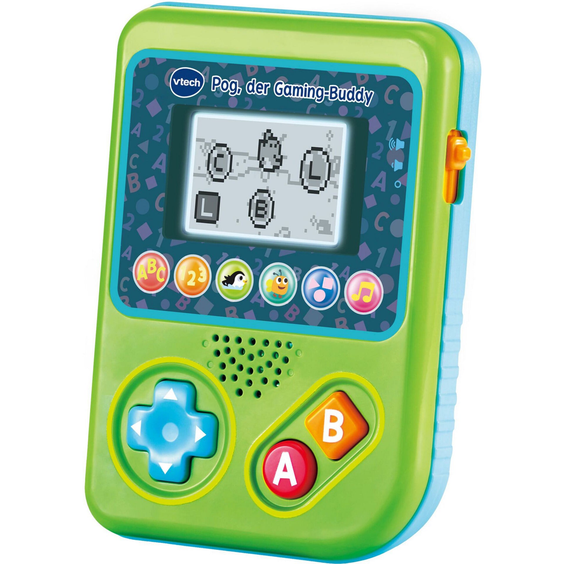 Kleine Hände, grosse Abenteuer - Spielen & Lernen mit dem Gaming-Buddy Pog von VTech, wo immer du bist! Pog ist die perfekte Handheld-Spielkonsole für Vorschulkinder, die mit interaktiven Spielen, Liedern und einer benutzerfreundlichen Steuerung das Lernen von Buchstaben, Zahlen und Formen spielerisch fördert. Das Gerät hat 6 Spielmodi: Individualisierung, Zählen, Buchstaben, Lesen, Formen und Musik. Gaming-Buddy Pog begrüsst, motiviert und und leitet mit freundlichen Sätzen durch die Spiele.