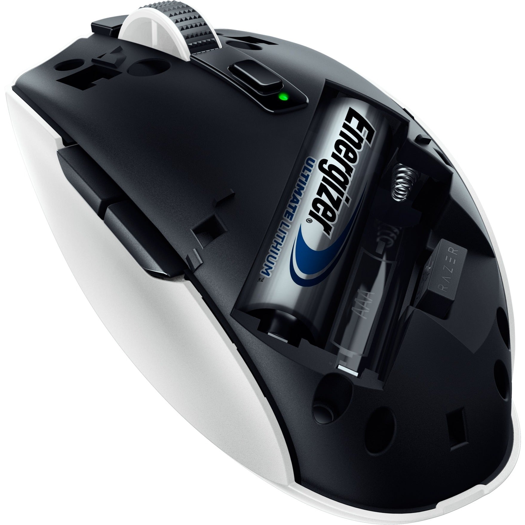 Die Razer Orochi V2 ist eine mobile kabellose Gaming-Maus mit bis zu 1.000 Stunden Batterie-Laufzeit. Ihr kompaktes, portables Gehäuse und das geringe Gewicht von nur 60 g machen sie zum idealen Reisebegleiter und ihre zwei kabellosen Modi mit Razer HyperSpeed Wireless und Bluetooth sorgen für maximale Flexibilität und unterbrechungsfreies Gaming. Dank neuer goldbeschichteter Kontakte sind die Razer Switches der 2. Generation noch besser vor vorzeitigem Verschleiss geschützt und halten bis zu 60 Millionen Klicks durch – für knackiges, zuverlässiges Auslösen bei jedem deiner Klicks. Der optische Razer 5G Sensor mit 18.000 dpi erkenn zuverlässig jede Bewegung ohne Spinouts und ermöglicht damit reaktionsschnelles und pixelpräzises Zielen. Die Orochi V2 braucht lediglich eine AA- oder AAA-Batterie zum Betrieb und verfügt über ein Hybrid-Batteriefach, das für eine optimale Gewichtsverteilung sorgt. Darüberhinaus können DPI-Einstellungen, Tasten-Konfigurationen und HyperShift-Funktionen mittels Razer Synapse 3 Software konfiguriert und dann im integrierten Speicher der Orochi V2 untergebracht werden.