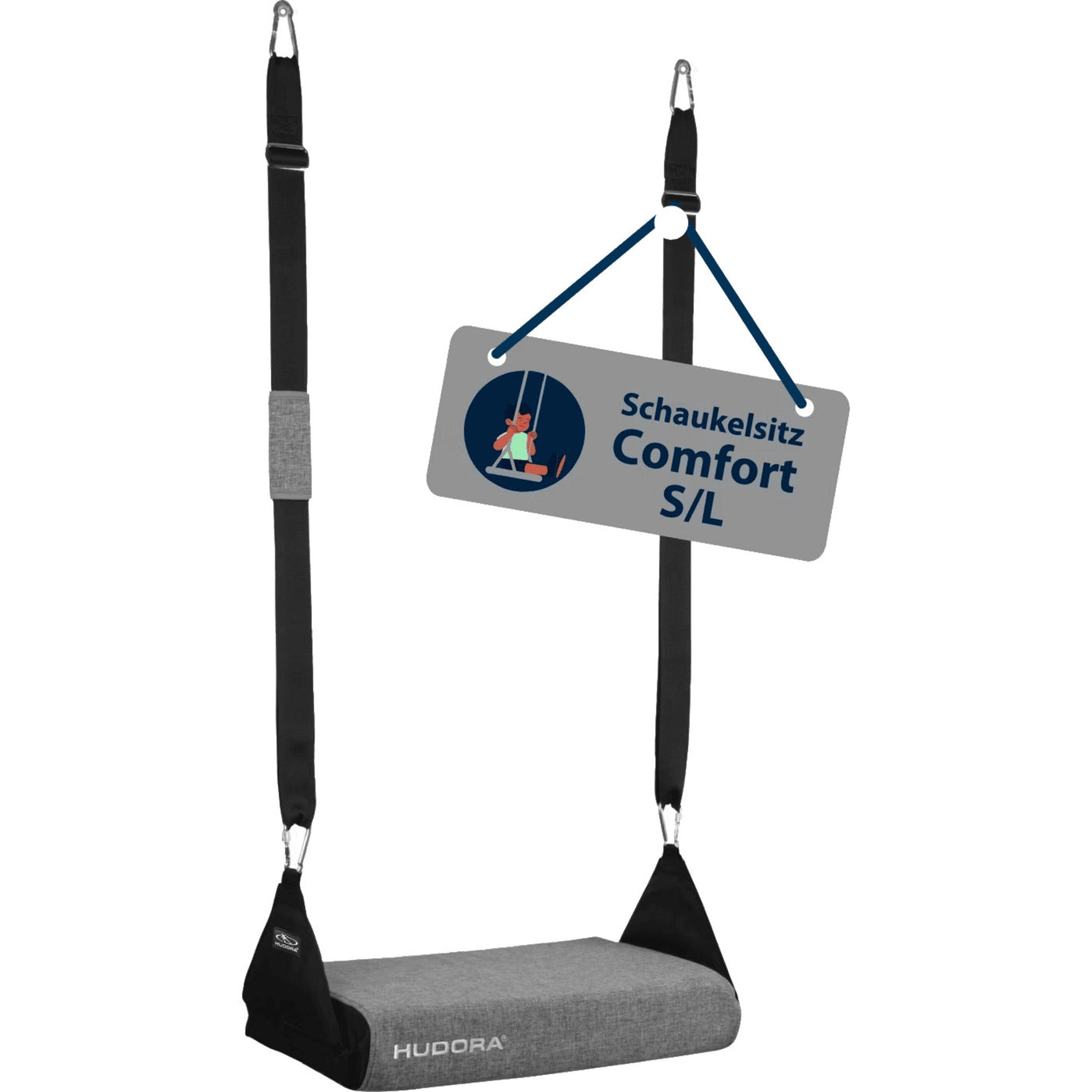 Der Schaukelsitz Comfort large von HUDORA bietet ein Schaukel-Erlebnis der ganz besonderen Art. Die weich gepolsterte Schaumstoff-Sitzfläche mit den Massen von ca. 51 x 34 cm ist für Jugendliche und Erwachsene konzipiert – mit einem maximalen Nutzergewicht von 120 kg. Die Aufhängung erfolgt über stabile Nylonbänder an Karabinerhaken, sodass der Schaukelsitz ganz einfach und unkompliziert anzubringen ist. Die komfortablen verstellbaren Handpolster runden den Schaukelgenuss ab. Der austauschbare Sitzbezug aus hochwertigem Olefin-Textilgewebe macht den Schaukelsitz zu einem echten Hingucker.