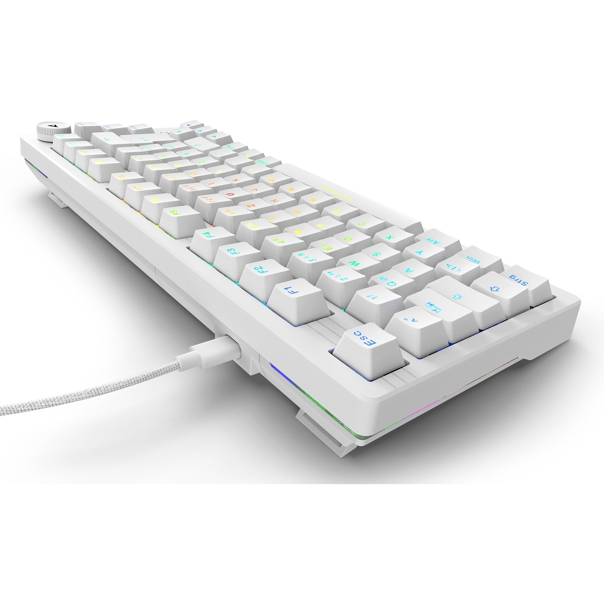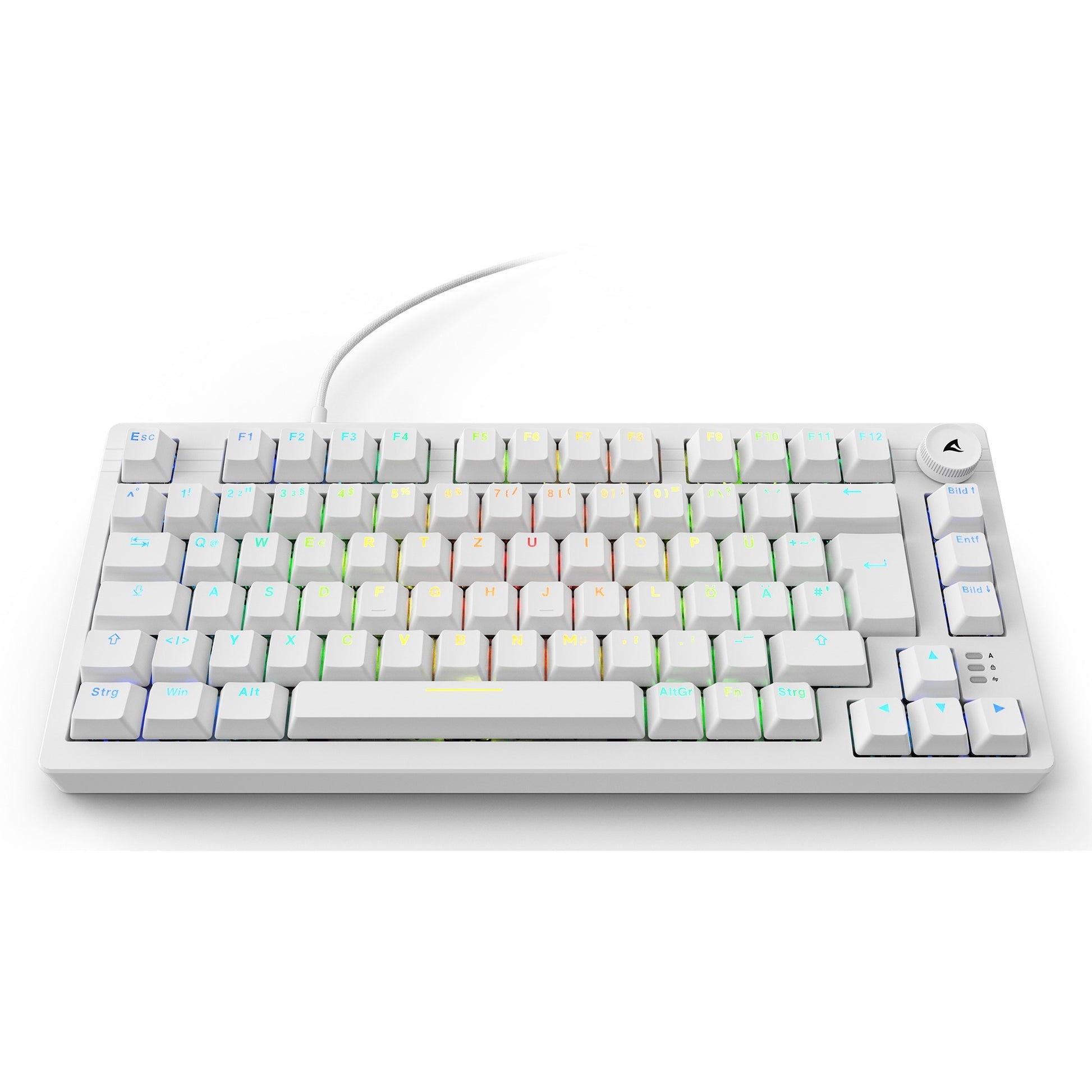 Mit ihrem stylischen 75-%-Layout und den anpassbaren Schaltern sowie der RGB-Beleuchtung macht die Sharkoon SKILLER SGK25 auf dem Schreibtisch und im Game jederzeit eine gute Figur. Dank des praktischen Drehreglers kann die Lautstärke des aktiven Games oder des laufenden Sprach-Chats schnell auf die individuellen Bedürfnisse angepasst werden. Für ein optimales Gaming-Erlebnis ist die SKILLER SGK25 bereits mit vorgeschmierten, roten Schaltern von Huano ausgestattet. Wer gerne andere Schalter je nach Geschmack, Genre und Einsatzzweck ausprobiert, kann jegliche Schalter mit 3 und 5 Pins mit der SKILLER SGK25 nutzen. Montagewerkzeuge sind bereits inklusive. Die beleuchtungsdurchlässigen Tastenkappen bestehen aus ABS, das für eine optimale Abriebfestigkeit mit der Double-Shot-Technologie hergestellt wurde. Die Beleuchtung der SKILLER SGK25 ist auch ohne Software ganz einfach an der Tastatur vollständig anpassbar.