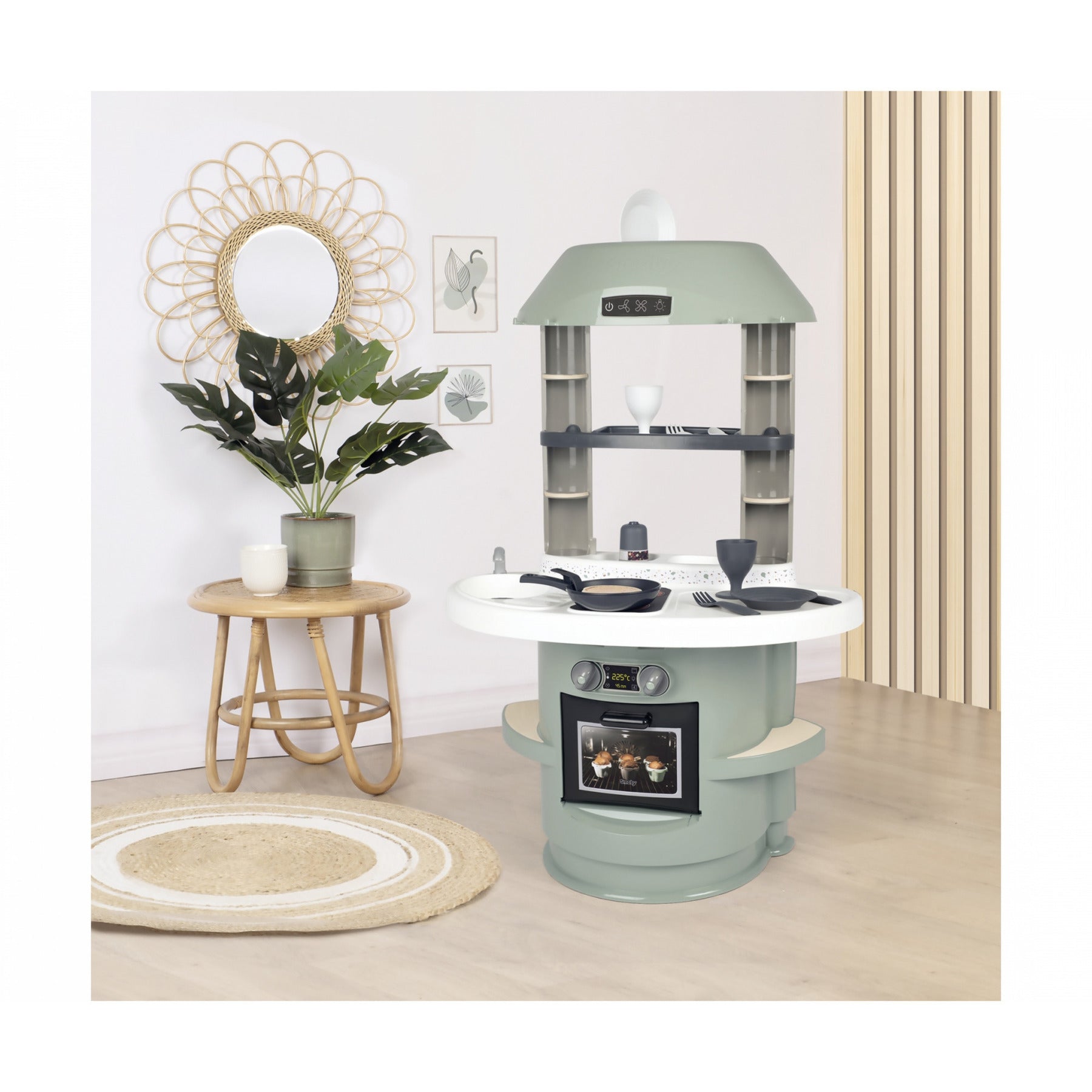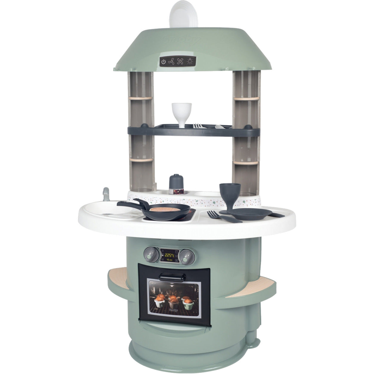 Die Spielküche Nova von Smoby begleitet kleine Nachwuchsköche bei ihren ersten Küchenexperimenten. Mit der kompakten Spielzeugküche können bereits Kinder ab 18 Monaten die tollsten Fantasiegerichte zubereiten und spielerisch kochen und aufräumen lernen. Mit ihrer soften Farbgebung trifft die Nova Küche populäre Designtrends und fügt sich gleichermassen harmonisch ins Kinderzimmer oder Wohnzimmer ein. Als angehender Koch braucht man natürlich auch die passende Ausstattung zum Üben: Dieses Küchenmodell verfügt über eine Herdplatte, einen Backofen, eine Spüle, einen kleinen Essbereich und viele Ablageflächen zum Verstauen des Zubehörs. 13 Accessoires sind im Lieferumfang enthalten, dazu zählen 2 Teller, 2 Gläser, Besteck, eine Bratpfanne, eine Salz- und Pfeffermühle mit "Krick Krack"-Geräusch sowie ein Pancake.