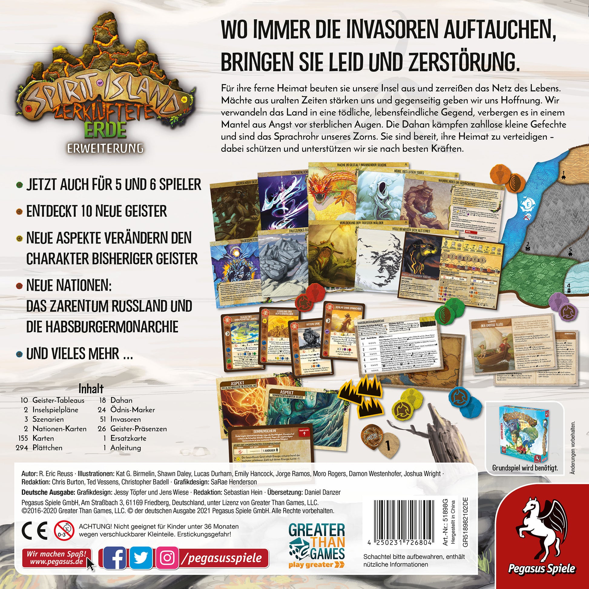 Die Insel ist weiterhin in Gefahr. Russland und die Habsburgermonarchie haben den Weg dorthin gefunden. Die Invasoren sind zahlreicher und fähiger als je zuvor. Während die Hoffnung zu schwinden beginnt, fällt die Verteidigung der Insel auf jene Geister, die mehr im Einklang mit den Gefahren und dem Chaos der natürlichen Welt sind. Bekannte Geister haben sich indes verändert und neue Aspekte angenommen. Bis zu sechs Geister können die Insel mit der grossen Spirit Island-Erweiterung "Zerklüftete Erde" nun gleichzeitig verteidigen.